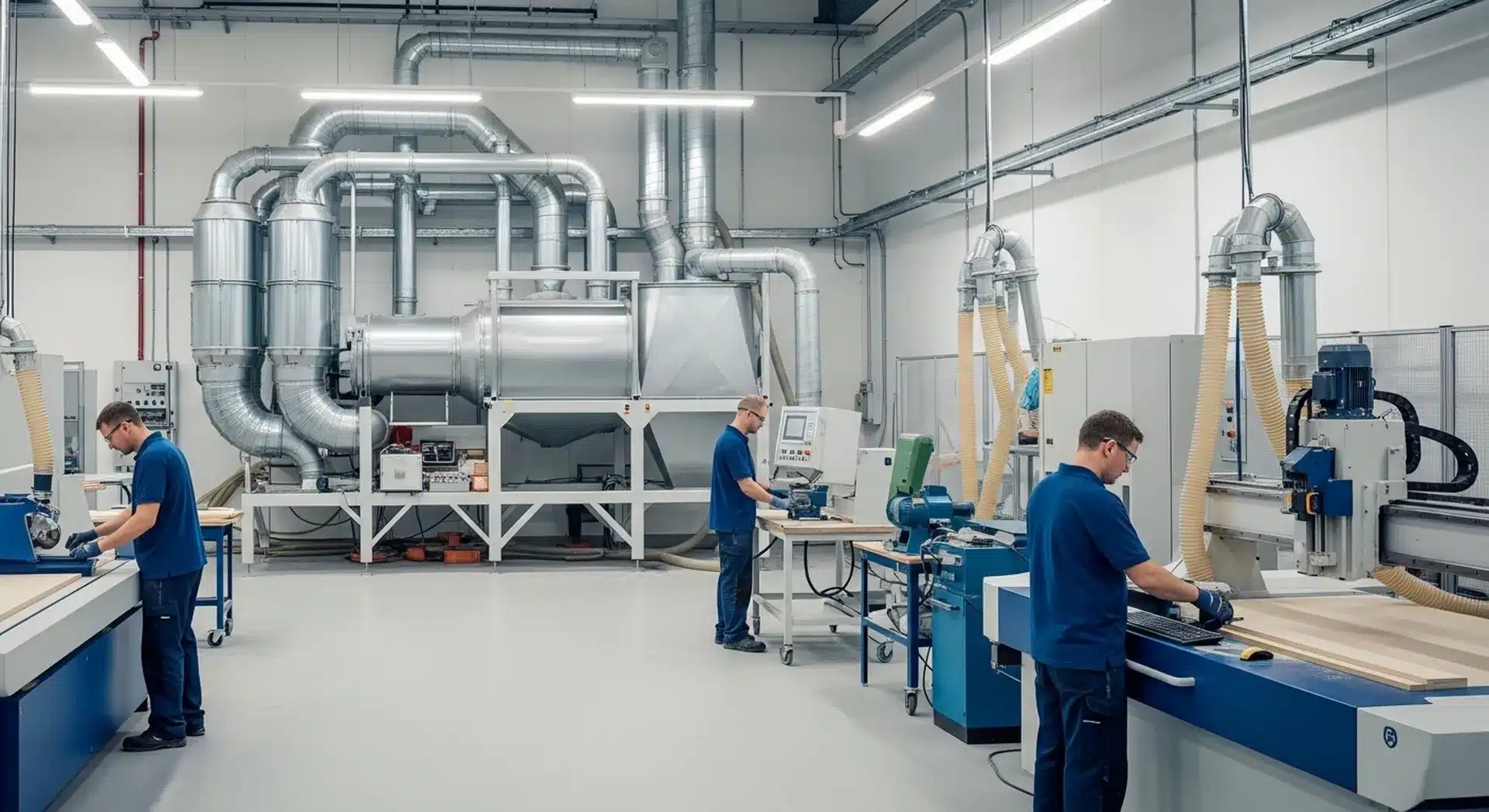 Ofrecemos sistemas completos de extracción de polvo industrial diseñados a medida para asegurar la máxima eficiencia en la captura y transporte de partículas en entornos exigentes.
